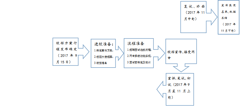 根据公司组织双选会的时间,结合现场招聘与宣讲会的方式进行组织。