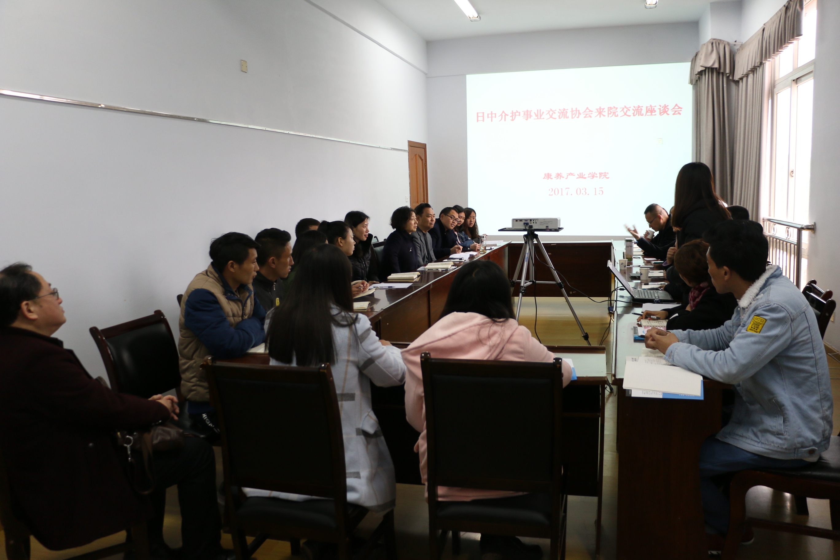业交流协会专务理事小池正明莅临公司座谈交流。公司经理靳能泉、党总支副书记(主持工作)彭时敏及专业教师、2015级和2016级老年服务与管理专业部分员工参加了座谈交流会。