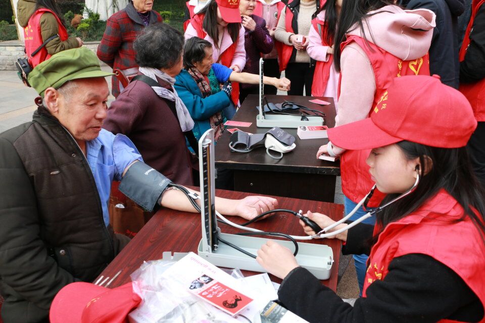 上午9:30分,社区义诊正式开始。具有与老年服务相关专业知识的同学们为老年人测量血压,并细心细致的解答力所能及的相关问题。同时,一旁的免费按摩也在有条不紊的进行,“雷锋们”一边给爷爷奶奶按摩,一边聊天,时不时地给大家普及一些健身康养的知识,气氛融洽温暖。