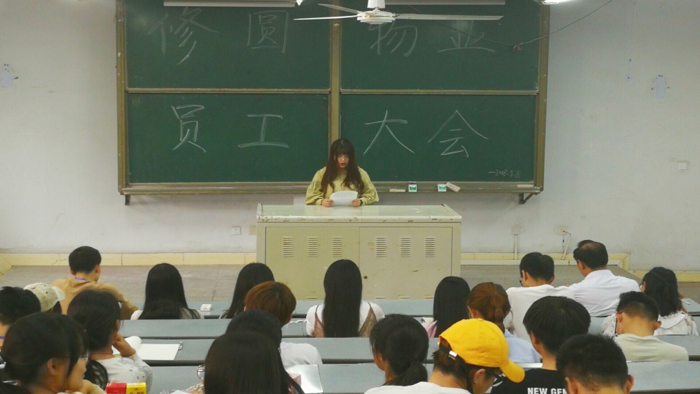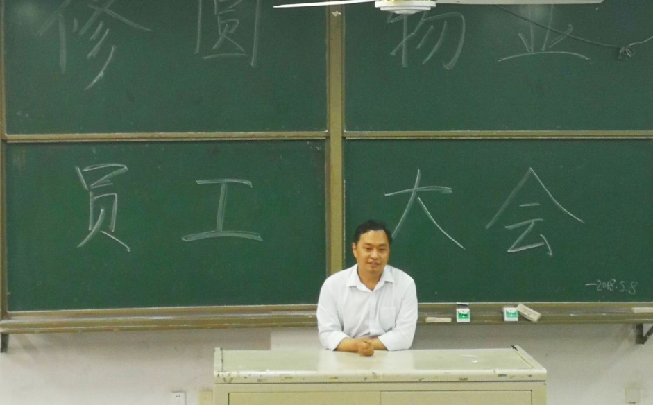 2018年5月8日中午,公司修圆物业服务有限公司在新教学楼124教室召开2018年第二次员工大会。公司经理兼公司董事长靳能泉教授参加了会议,行政管理部彭菲主持会议。