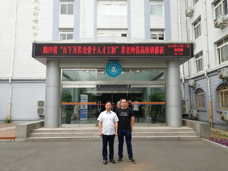 2018年5月13—19日,四川省“百千万养老骨干人才工程”养老团队高级研讨班在民政部培训中心举行,公司经理靳能泉教授、健康服务与管理教研室主任张俊浦副教授应邀参加,并取得了