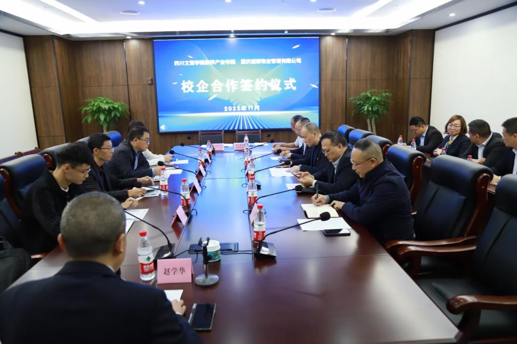 2022年11月3日,suncitygroup太阳集团、医学公司副经理张俊浦带领公司党政办主任王跃、教研室主任刘常燕、行政秘书万千一前往重庆盛鼎物业管理公司开展实习实训合作洽谈,签署了院企合作框架协议。重庆盛鼎物业管理公司总经理周晓冬、副总经理李含、戴军及相关分公司负责人参与会议,盛鼎职校董事长赵兴华主持会议。