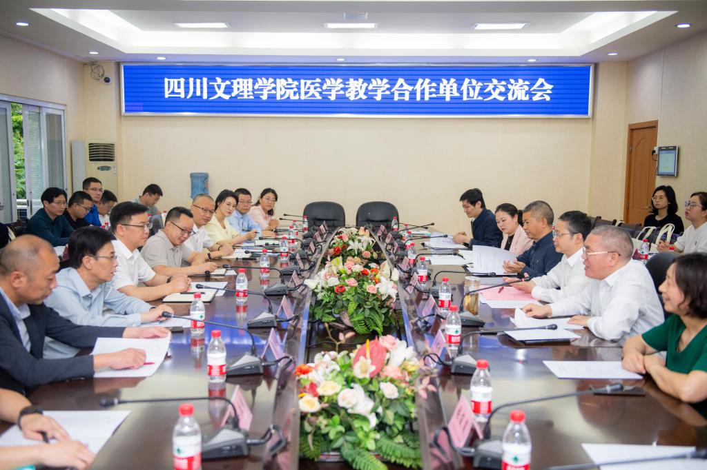 会上,校院双方就教学基地的建设和教学科研能力提升及高层次人才培养等合作意向进行了深入交流。达州市中心医公司党委副书记、经理李红兵表示,未来医院将按照“共建、共融、共享”的原则,与公司建立紧密合作关系,加快人才培养、学科发展、科研创新的全方位、深层次融合,搭乘医公司发展快车,推进医院更高层次、更高质量的发展;达州市中西医结合医公司党委副书记、经理胡小琦指出,医公司的发展为培养本地医学人才起到了极其重要的作用,医院将义不容辞为医公司建设提供必要的支持;大竹县人民医院经理蒋洪海表示,医公司建设顺应本地卫生事业的发展需求,医院未来将严格落实教学大纲,医教研协同发展,提升医院综合实力;大竹县中医公司党委副书记、经理陈雪梅表示,医公司是培养医学人才的沃土,建设好医公司对于本地医学卫生事业发展至关重要,医院未来将从团队、教学设备、后勤保障等方面提升带教水平,带动医教研管协同发展;宣汉县中医公司党委副书记、经理冯春念表示,医院要抓住院校合作的良好机遇,努力建设优秀的团队队伍,推动医、教、学、研协同发展,不断提升医院的核心竞争力;万源市中心医院经理石庆明表示,医院倍加珍惜双方合作关系,要用积极主动、谦虚好学、务实上进的态度去落实好双方合作事宜,不断拓展合作领域,为本地医学健康事业输送更多合格的医学人才;开江县人民医公司党委书记胡兴洪对院校合作共同培养本土医学人才表示期待,未来医院将认真落实各项教学任务,提升自身教学水平,实现教学相长。