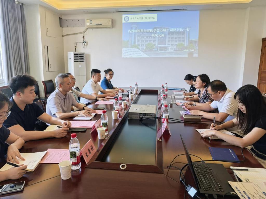 为进一步深化校会合作,推动医学教育与科研创新发展,7月4日,四川省医学会副秘书长万绍平一行莅临公司交流指导。公司党委书记彭时敏主持会议,公司领导班子及教师代表参加座谈,双方就公司发展现状、科研合作需求等进行了深入探讨。