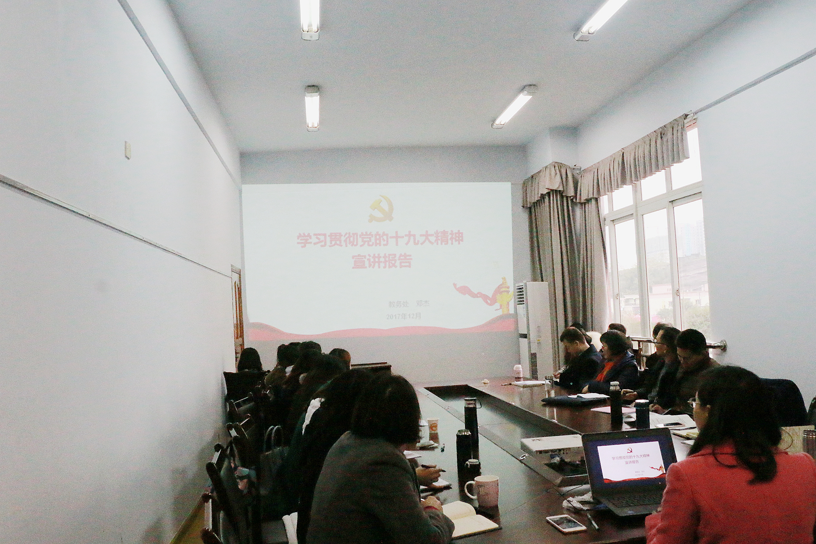 邓处长从党的十九大召开的时间、主要议程、重要意义以及主要内容为大家进行了梳理。在宣讲中,邓处长着重从党的十九大的主题和主要成果、习近平新时代中国特色社会主义思想、过去五年的历史性成就和历史性变革、中国特色社会主义进入新时代、我国社会主义主要矛盾的变化、两个一百年奋斗目标的战略部署、我国经济社会主义发展的重大战略部署以及坚定不移推进全面从严治党八个方面为大家进行了讲解。通过邓处长的讲解,大家对十九大的会议精神有了进一步的认识和了解。