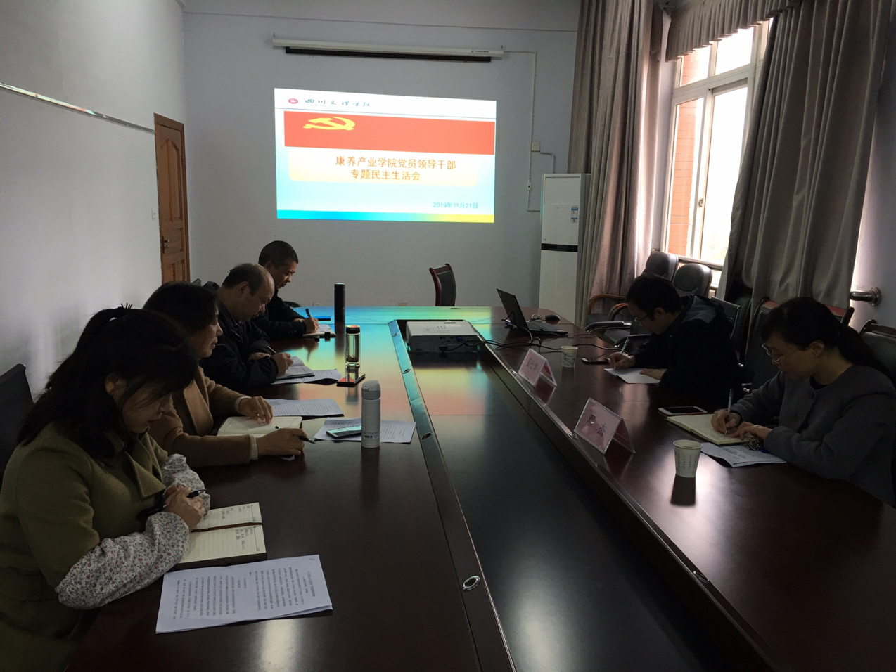 11月21日下午,康养产业公司党总支领导班子召开了“不忘初心、牢记使命”主题教育专题民主生活会,党总支书记彭时敏主持会议。副董事长邓杰教授、党委宣传部副部长姜仕华、纪委史敏娜同志到会指导。