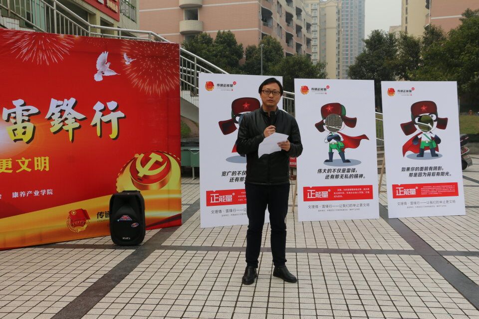 于贵书记在活动仪式上发表了热情洋溢的讲话,他希望全体青年志愿者要积极参与到学雷锋活动中,以此来提升自我素质,提升文理学子素质,向社会传递向上、向善的正能量;康养产业公司党总支副书记彭时敏老师回顾了雷锋精神对自己成长的影响,她说雷锋精神是在实践中不断丰富和发展的,我们当下要弘扬雷锋精神就是要从身边事、从小事着手,提高同学的文明素养和奉献意识,让公司成为社会的文明引领和奉献精神的传播者;她告诫同学们,学雷锋不应该仅仅只是三月的活动,她应该不只是踏着春风来,随着春天走,她应该长存在我们每个人的心中,成为我们的精神指引。