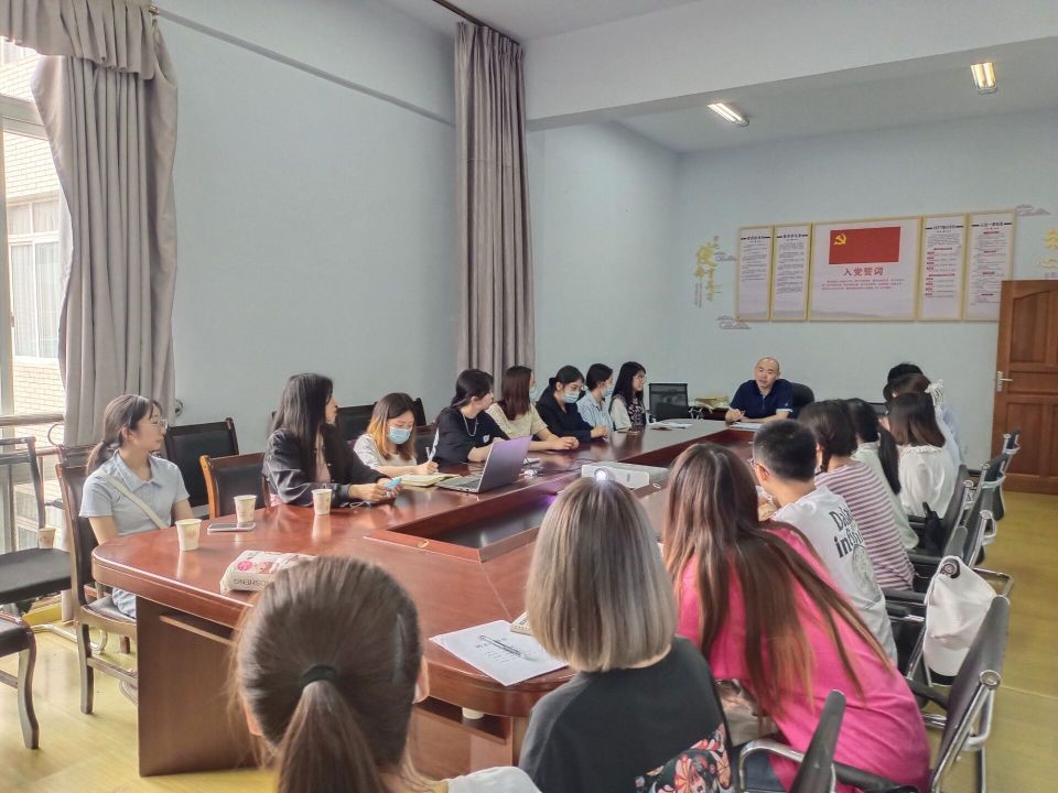 5月24日,suncitygroup太阳集团在博文楼420会议室召开2022届毕业生党员教育大会,员工党支部书记屈川主持会议。