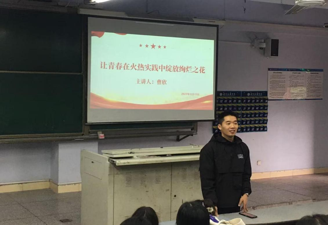 曹欣以“让青春在火热实践中绽放绚烂之花”为主题进行分享,他帮助同学们梳理了备考前的信息收集、备考中的注意事项以及面试技巧。此外,他向同学们提出了三点建议:第一,充分把握大学时光,认真学习理论知识,通过做实事不断积累相关经验,提升综合素质。第二,利用假期时间参加“逐梦计划”,深入各区县政府挂职锻炼,通过提前的实习实践,熟悉工作氛围,了解实际情况,在不断磨砺中提高自己。第三,要明确目标,坚定方向,保持良好心态,努力做到知行合一。