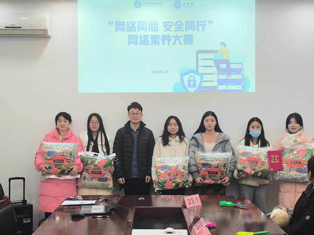 大赛内容涵盖计算机及网络基础、网络道德、网络反诈防骗等方面的网络素养知识。同学们竞相抢答,激烈角逐,2023级9班以良好的应变能力和知识储备脱颖而出获得一等奖。专职辅导员陈丹对竞赛题进行了解答,并结合近期高校发生的网络安全案例从上网习惯、社交隐私、密码管理等方面作了分享。