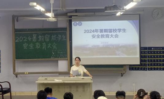 为进一步提高暑期留校员工的安全意识,切实保障暑期留校工作安全有序开展,7月3日晚上,公司组织全体留校员工在博文楼124教室召开了2024年暑期留校员工安全教育大会。学工办主任周宏星出席会议并讲话,全体专职辅导员、员工会劳生部成员及暑期留校员工参会。
