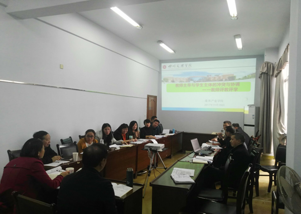 2017年11月15日下午,公司在420会议室举行员工评教评学座谈会。校督导专家陈正平、公司全体教师参加,公司经理靳能泉主持会议。
