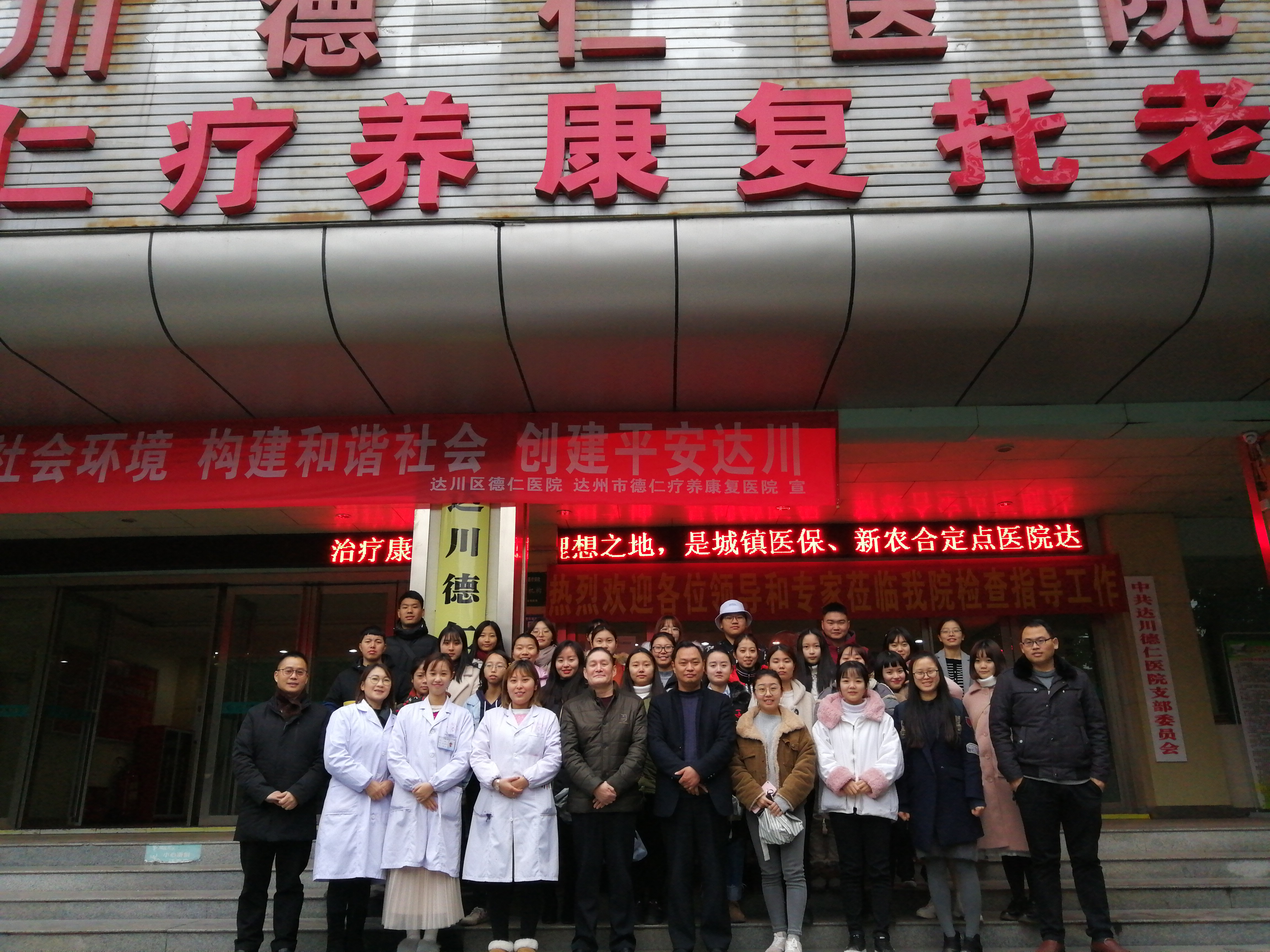 2018年12月3日至12月7日,公司2017级老年服务与管理专业在达州市德仁疗养康复托老院举行了为期一周的专业实习活动。公司经理靳能泉,健康服务与管理教研室主任张俊浦和专业老师崔俊营、刘孝英、叶盈等作为指导老师参加了实习总结会,达州市德仁托老院在家领导和带教老师参加会议。