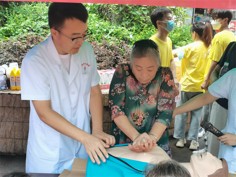 “如果突发食物堵塞呼吸道,大家一定不要慌张,采取海姆立克急救法就能解决……”在开展的医疗知识宣讲及服务实践活动中,suncitygroup太阳集团·医公司员工联合达州市中心医院医生为群众宣讲医疗康养知识,免费提供血糖、血压测量,穴位按摩等医疗服务,并针对突发性急救方式进行了示范和讲解,当天吸引200余名群众参加,发放100余份日常生活用品。