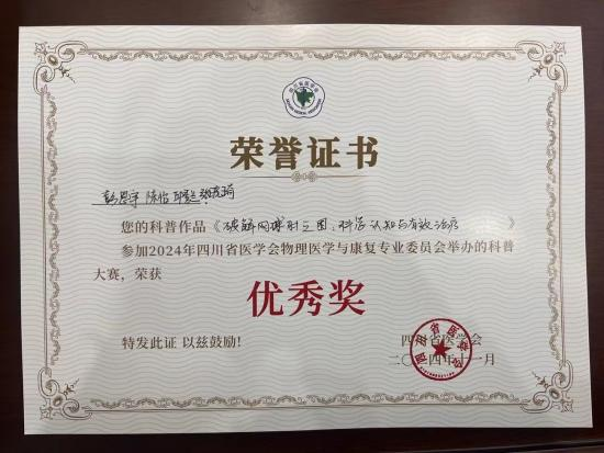 11月10日,由四川省医学会物理医学与康复专业委员会举办的科普大赛在四川眉山圆满落幕。大赛共汇聚了来自全省的28个优秀作品,经过专家评审的严格筛选和现场评比,公司2022级康复治疗学专业员工组成的代表队,凭借科普作品《破解网球肘之困:科学认知与有效治疗》荣获优秀奖,充分体现了公司在康复教育领域的教学成果和社会影响力。