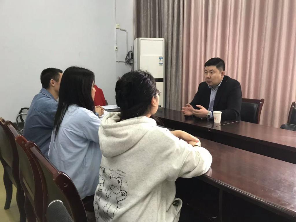 4月10日,上海添健集团、家和养老(大连)两家企业到公司交流,公司党委副书记屈川、副经理张俊浦、学工办主任周宏星及毕业班辅导员参加座谈。