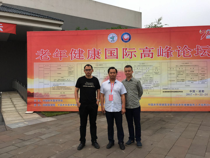 2017年9月月22日—24日,在成都医公司举办了“老年健康国际高峰论坛”,公司靳能泉经理、张俊浦老师作为中国老年保健医学研究会老年健康服务人才培养分会常务委员和委员应邀参会、公司专业教师崔俊营也随同参加。