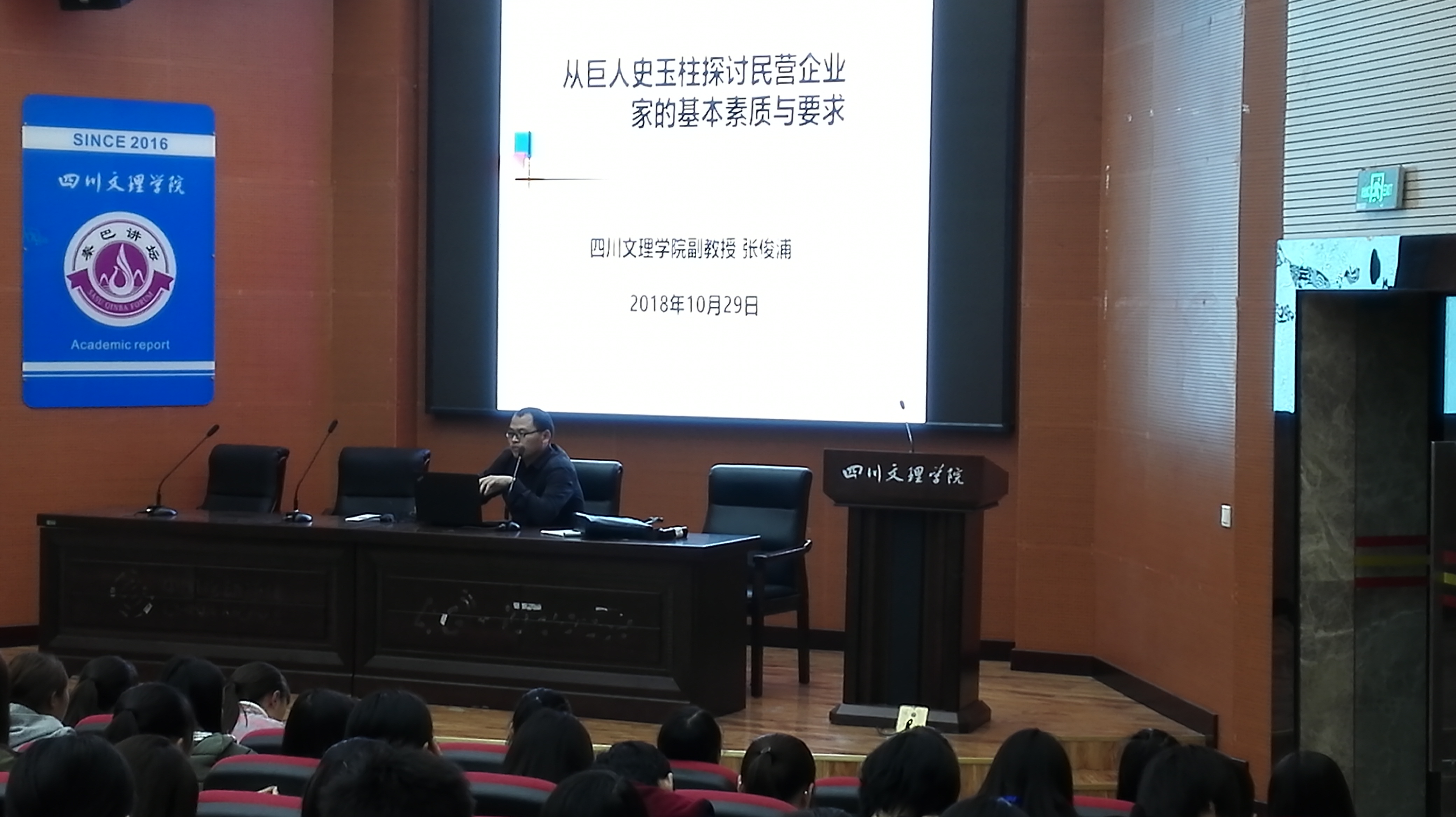 10月29日晚,公司健康服务与管理教研室主任、达州市社会工作协会会长张俊浦副教授在学术报告B厅举行做了《从巨人史玉柱探讨创业者的基本素质与要求》的主题讲座,讲座由公司副经理陈熙隆副教授主持,公司200余名员工聆听了本次讲座。