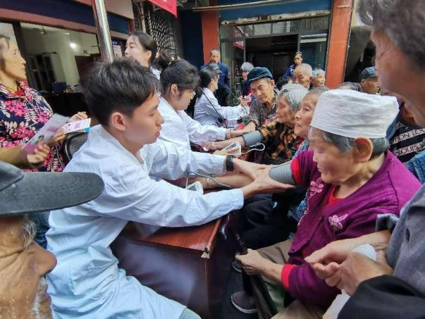 吴沛娟和杨婧老师结合实际案例,以通俗易懂的语言对老年人常见疾病进行了深入讲解。他们的专业知识和生动讲解,让社区居民对心脑血管疾病、高血压、脑梗、糖尿病、心脏病和癌症等有了更深刻的认识。社区居民积极参与互动,现场气氛热烈,公司员工作为听众学习专业知识的同时还在互动环节中协助老师解答居民的问题,展现了良好的专业素养和服务意识。师生还为社区居民提供了免费问诊咨询和血压测量服务,并发放了健康宣传手册。