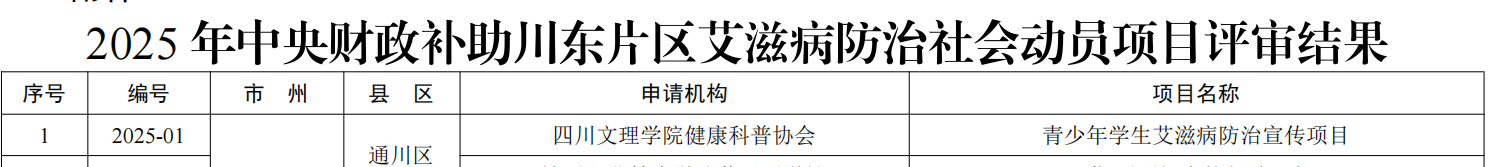 7月9日,公司健康科普协会青少年员工艾滋病防治宣传项目经评审,成功获批2025年中央财政补助川东片区艾滋病防治社会动员项目。